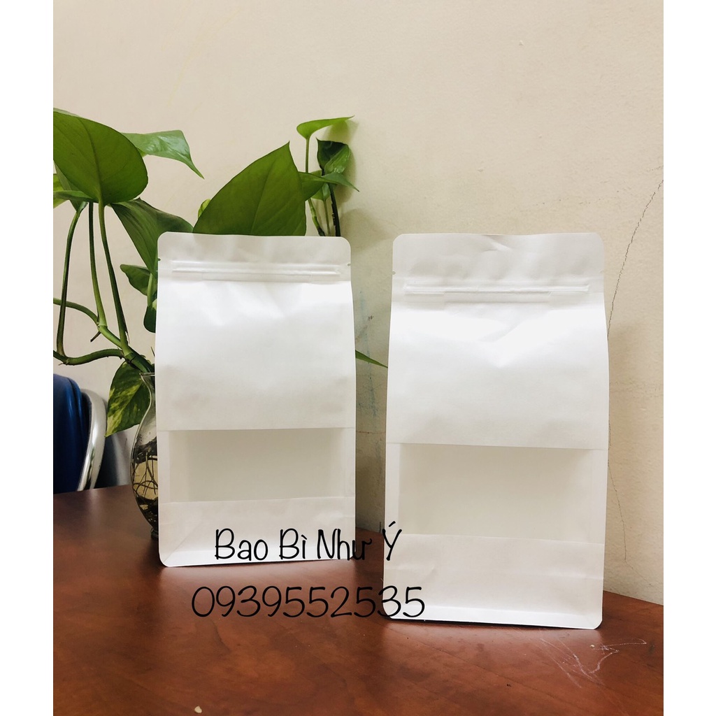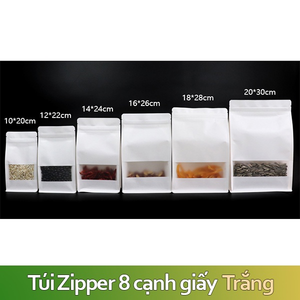 {1kg/size} túi zip 8 cạnh giấy có cửa sổ tràn - có 2 màn chống thấm