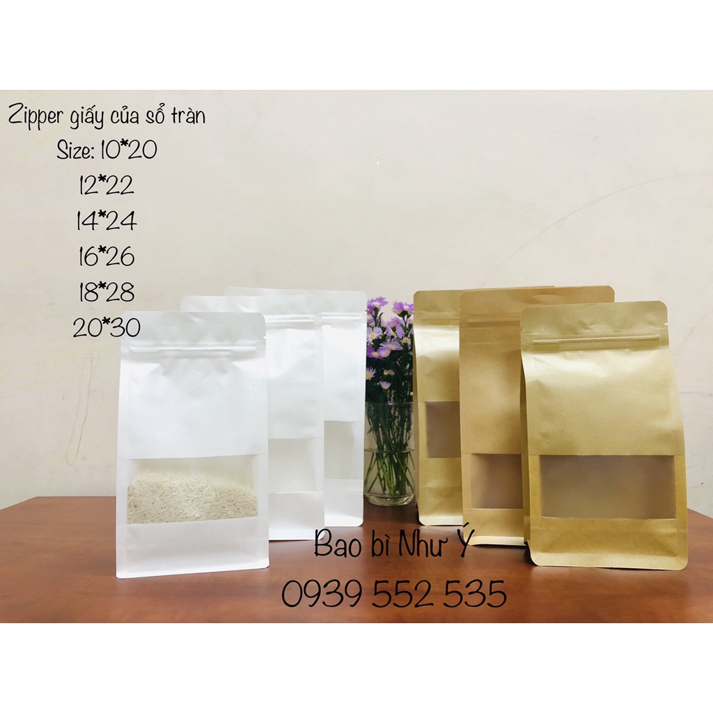 Nhà cửa & Đời sống > Dụng cụ chăm sóc nhà cửa > Túi nilon & túi rác || {1kg/size} túi zip 8 cạnh giấy có cửa sổ tràn - có 2 màn chống thấmCòn hàng