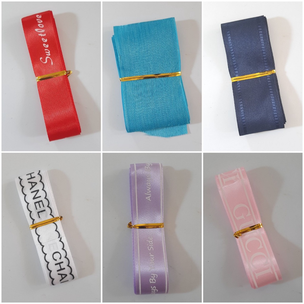- Ruy băng lụa họa tiết cao cấp các loại, chất đẹp- Đóng gói : mỗi loại dài 1m