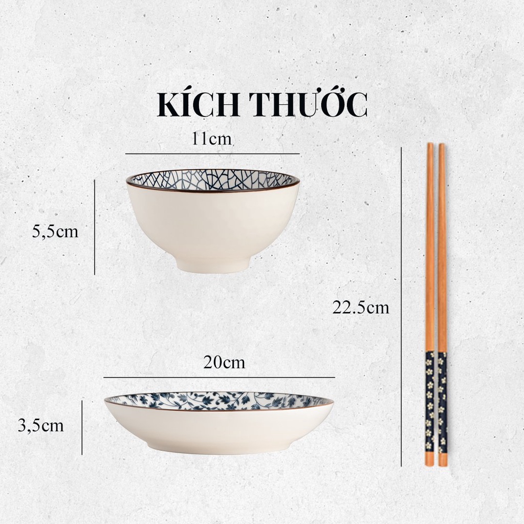 BỘ 2 CHÉN (BÁT), 2 ĐĨA, 2 ĐŨA PHONG CÁCH NHẬT BẢN_x000D__x000D_