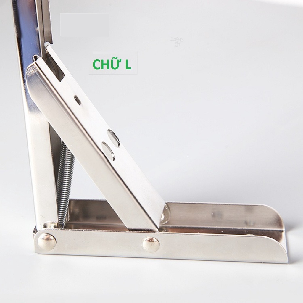 Bộ 2 chiếc bản lề gập thông minh ke vuông làm giá đỡ kệ bàn treo tường chữ L chữ K inox sắt