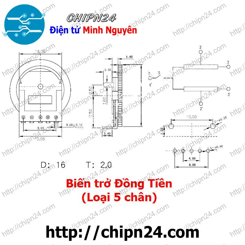 [2 CHIẾC] Biến Trở Đồng tiền 5 Chân 2K (16x2MM) (B202 202)