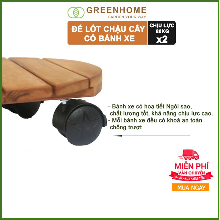 Nhà cửa & Đời sống > Làm vườn > Chậu cây || Bộ 2 Đế lót chậu cây có bánh xe, hình tròn, màu nâu, bằng gỗ, chịu lực 80kg, R30xC8cm |GreenhomeCòn hàng