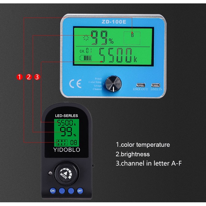 Bộ 2 đèn led bảng Studio 192w ZD-100E Yidoblo cho ra ánh sáng mạnh mẽ, mềm mịn có tính di động cao lên rất thích hợp cho studio hay đi chuyển ngoài trời, trường quay… Đèn ZD-100E 96w với thiết kế siêu mỏng với 320 bóng LED mỗi đèn, có chỉ số CRI >95. Combo 2 đèn ZD-100E 192w có nhiệt độ màu từ 3200K – 5500K, ngoài ra đèn còn được trang bị gá pin rất thích hợp quay chụp ở những nơi không có nguồn điện trực tiếp.THÔNG SỐ KỸ THUẬT: