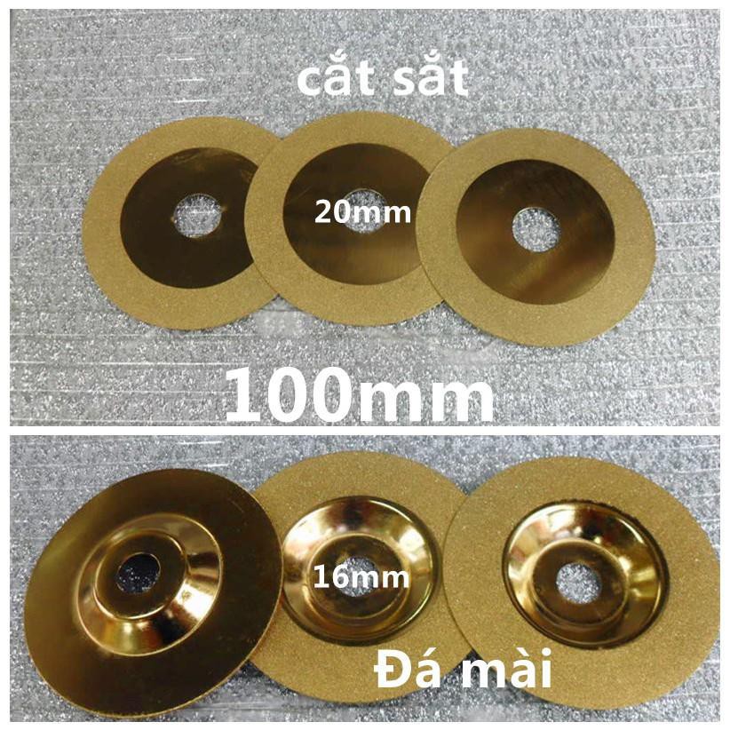 Bộ 2 Đĩa cắt,Đá mài kim cương 100mm(vong), trên bề mặt với phủ lớp xoàn nhân tạo, thích hợp dùng cho việc cắt tỉa, mài kim loại, gạch ceramic, đá, kính,... Đĩa với đường kính 100mm., độ dày 1mm, đường kính bên trong của đá mài 20mm, con đường kính bên trong của Đá cắt 16mm.