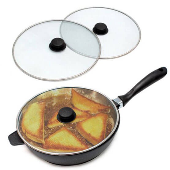 - Ngoài công dụng che chắn dầu mở văng ra ngoài khi chiên xào, nắp vung còn là nắp đậy tiện dụng cho những chiếc chảo thường không có nắp đậy.