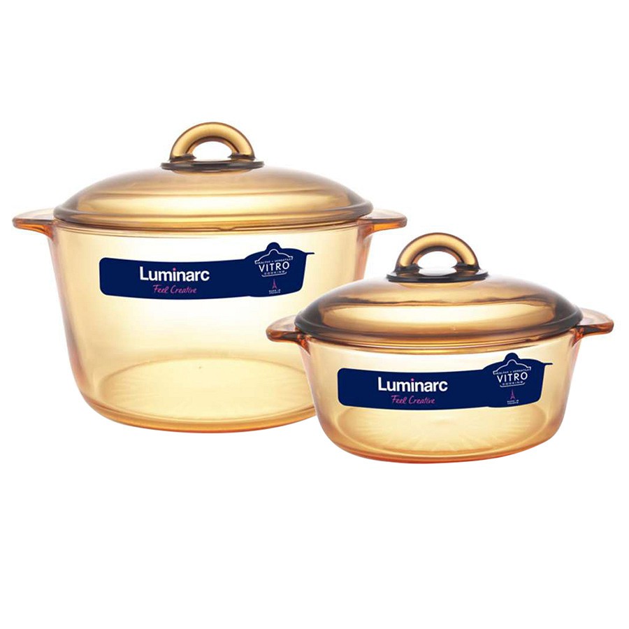 Bộ 2 Nồi Thủy Tinh Luminarc Vitro Amberline Granite 1L - 3L | Phân Phối Chính Hãng