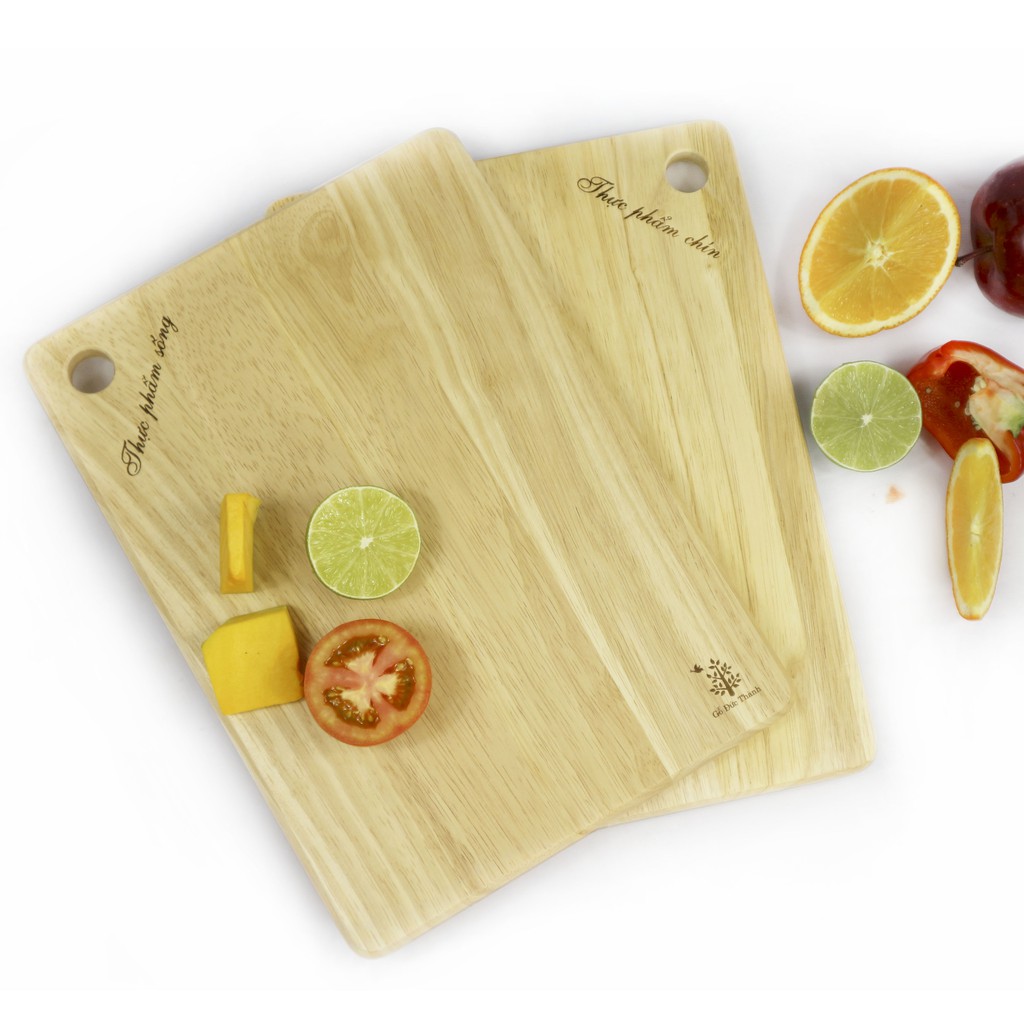 Bộ 2 Thớt Gỗ Cao Su Tự Nhiên Đức Thành Dùng Cho Thực Phẩm Sống Và Thực Phẩm Chín - Dụng Cụ Nhà Bếp Cao Cấp