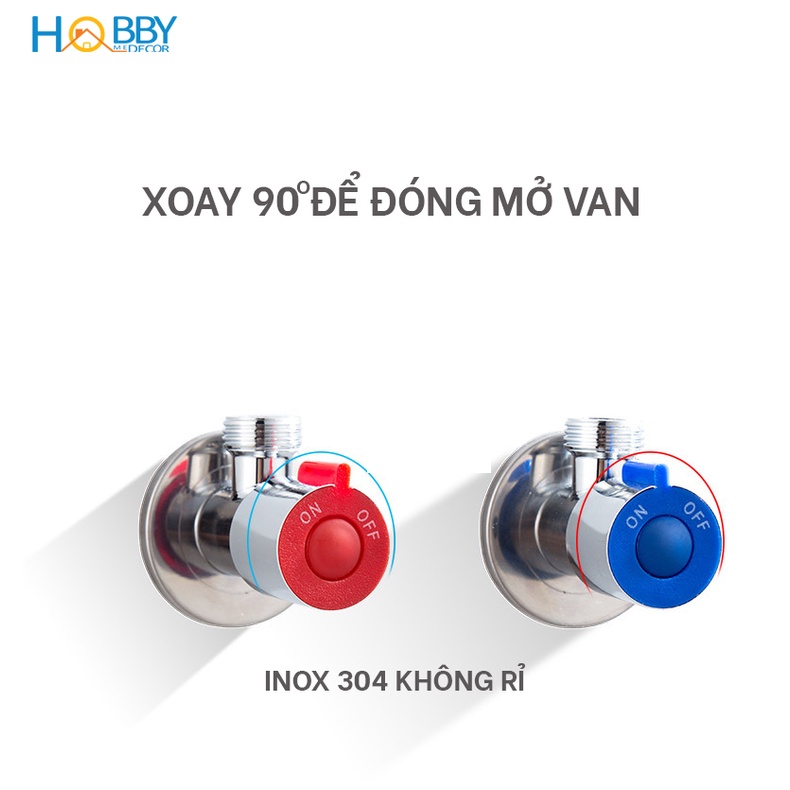 Bộ 2 van cấp nước chữ T giảm áp 2 màu xanh đỏ nóng lạnh HOBBY Home decor CBT - chuẩn Inox 304 không rỉ sét