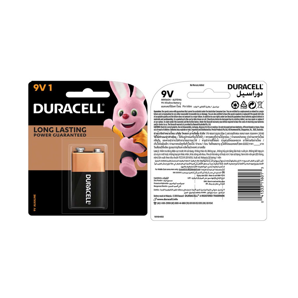 - Loại pin : Pin vuông 9V Duracell- Volts : 9V
