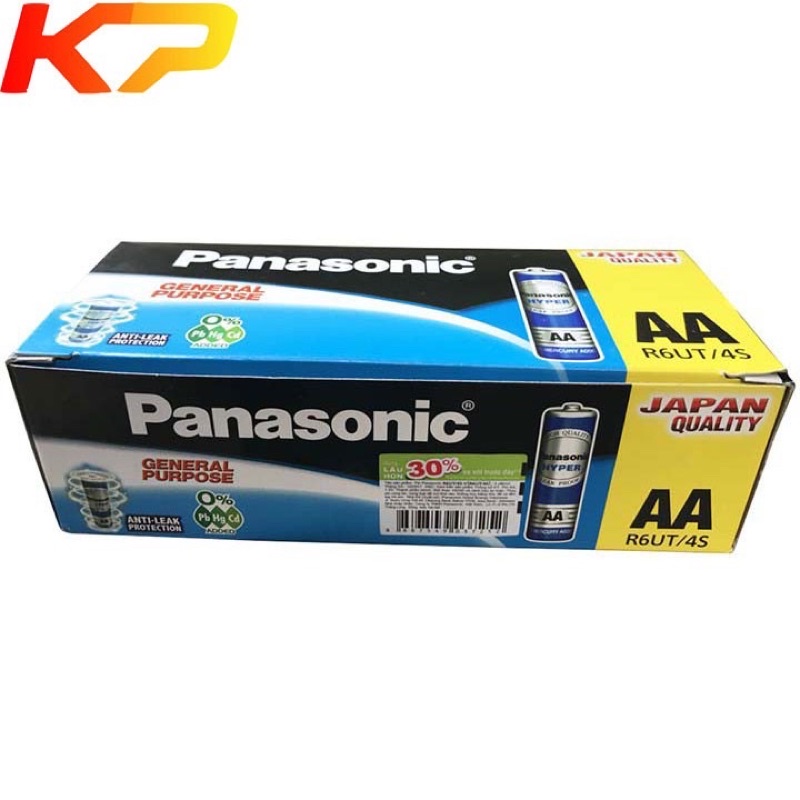 - Pin AA Panasonic r6ut/4s Là loại pin thông dụng cần thiết phổ biến trên thị trường hiện nay, pin AA panasonic là loại pin than chất lượng tốt, tiêu thụ điện năng trung bình có cường độ dòng điện 1,5v. pin AA panasonic thường được sử dụng cho các thiết bị như đèn pin, đồng hồ treo tường, đồ chơi, điều khiển …