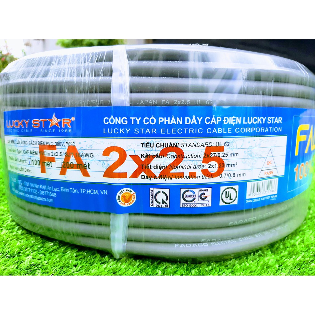 Qúy khách vui lòng nhận hàng sau khi đặt mua vì dây cắt sẽ không nối lại được.Dây điện Fadaco Fa tròn 2x2.5 ( Xám tròn 2 sợi ) -Cuộn 100 mét Hai lớp vỏ bọc