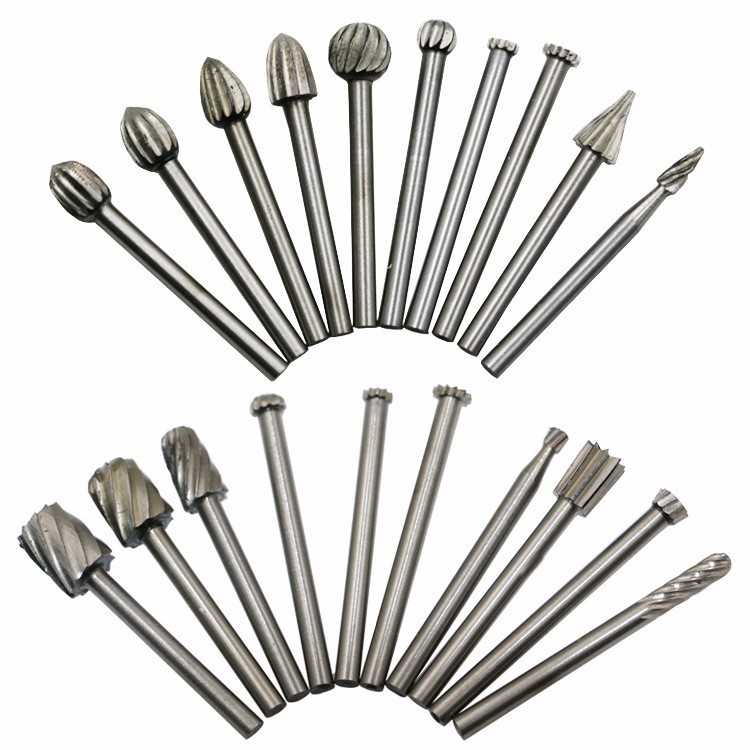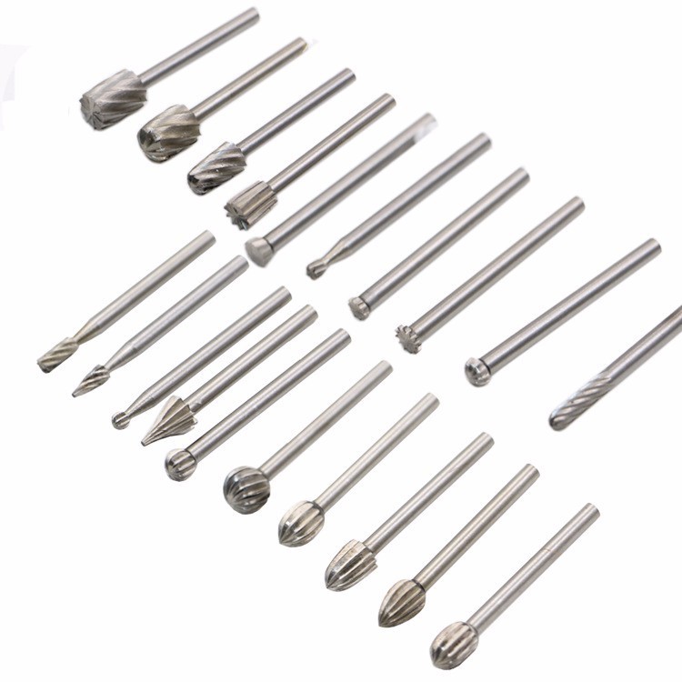- Bộ sản phẩm gồm 20 mũi khắc, mài, làm lũa, chạm trổ cao cấp dùng để tạo hình, tạo lỗ, rạch khía, làm khe, đục đẽo trên gỗ, kim loại, được làm từ kim loại HSS có độ cứng, sắc và độ bền cơ học cực cao.