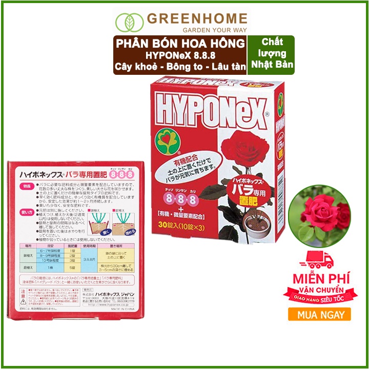 Giới thiệu 20 viên Phân bón hoa hồng Nhật, Hyponex 8.8.8, giúp thân to khoẻ, nhiều chồi, hoa to, lâu tàn |Greenhome