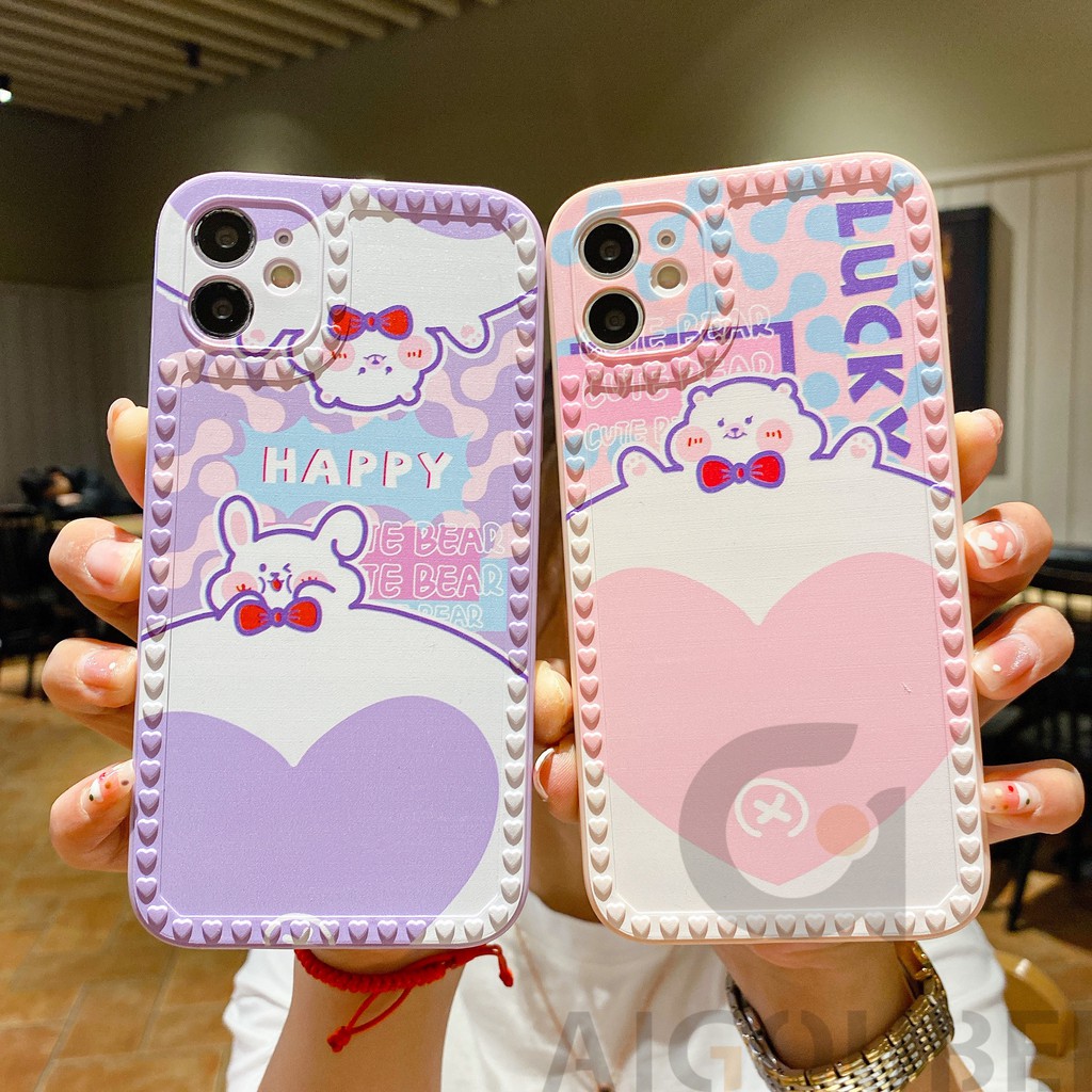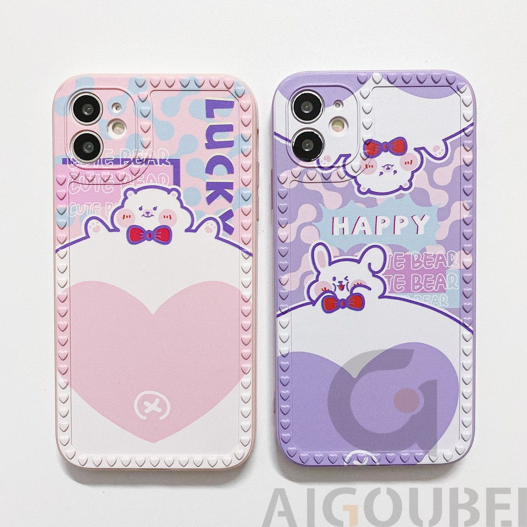 Giới thiệu 2021 New Big Love Bear two colors VS Rabbit shaped silicone mobile phone case Protective case 12 12Pro 12ProMax 11Pro 11ProMax 7 8 7Plus 8Plus X XS XR XSmax Matte soft bag