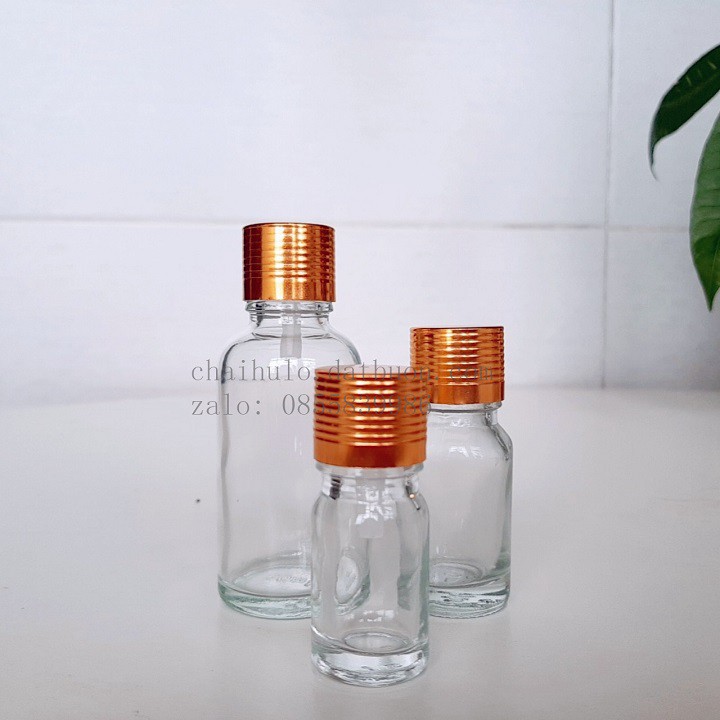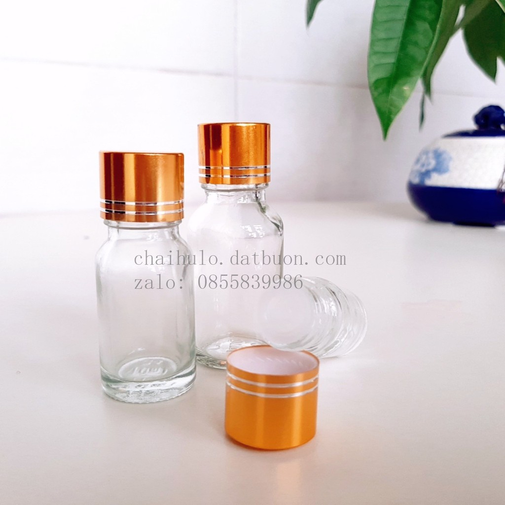 20ml - Lọ đựng tinh dầu nhỏ giọt 20ml, thủy tinh trong suốt, nắp nhôm vàng {sỉ từ 3,6k}