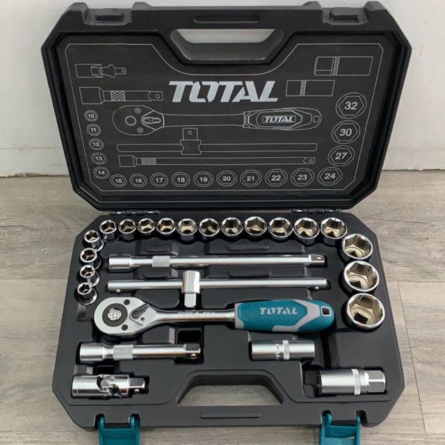 Nhà cửa & Đời sống > Dụng cụ & Thiết bị tiện ích > Dụng cụ > Hộp dụng cụ cầm tay || Bộ 25 cái đầu tuýp (1/2 inch) & cần siết 2 chiều Total THT121251Còn hàng