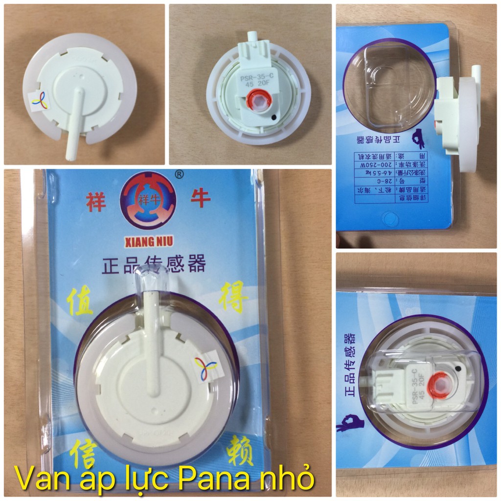 AN ÁP LỰC PANA HÀNG HÃNG LOẠI NHỎVan áp lực máy giặt (cảm biến mực nước) có chức năng cảm biến mức nước trong lồng giặt. Khi bật máy các bạn thấy máy giặt đảo mấy vòng rồi mới cấp nước vào, lúc này máy giặt đang cân trọng lượng quần áo của bạn để tính lượng nước cấp vào. Van áp lực có tác dụng báo mức nước về cho board mạch xử lý chạy. Công tắc này làm việc thông với một ống dẫn nước bằng nhựa nối từ công tắc áp suất xuống bên hông phía ngoài lồng giặt, gần tới đáy lồng. Ống nhựa chứa không khí bên trong. Khi nước vào lồng giặt thì cũng vào ống nhựa. Khi nước dâng cao bên trong ống, nó sẽ đẩy hơi và gia tăng áp suất hơi trong ống. Khi áp suất hơi đạt đến một mức nhất định, thì nó sẽ mở công tắc áp suất.