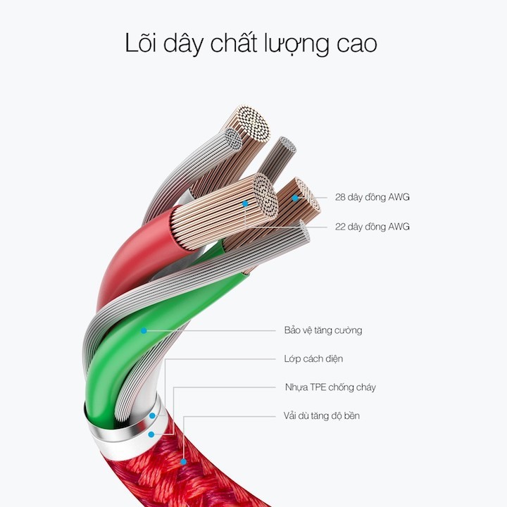 - Dây vẫn được làm chống rối và được sử dụng dụng nhựa dẻo bao bọc bên ngoài chính vì thế dù bận gập và bẻ cong không bị gãy.