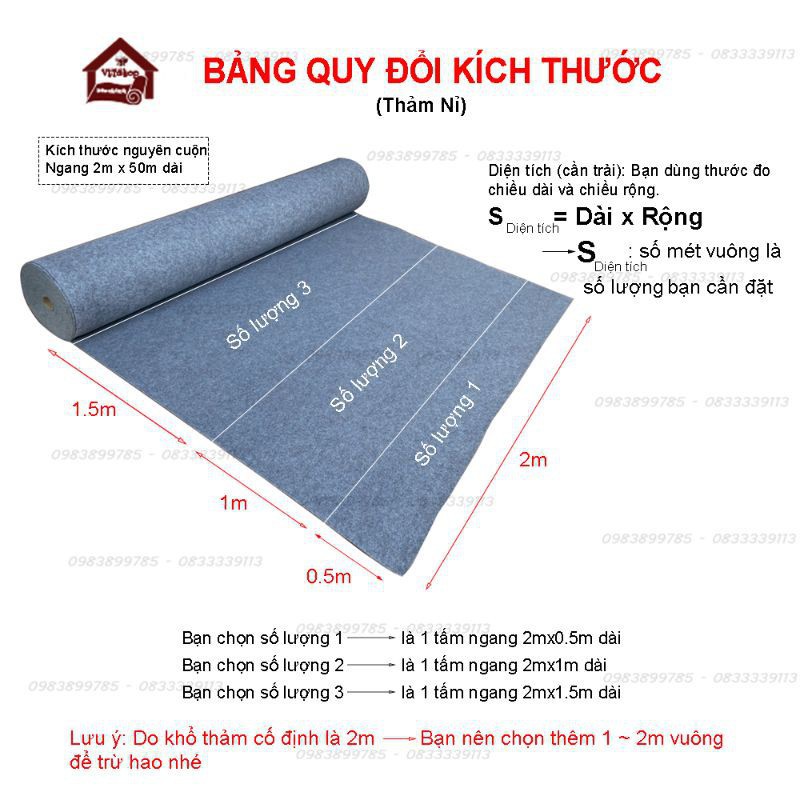 📢 Do khổ thảm cố định là 2m