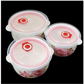 Giới thiệu Bộ 3 bát sứ nắp hút chân không có tai cầm
