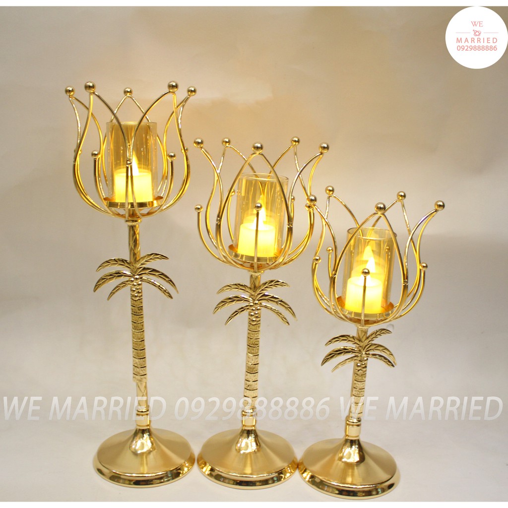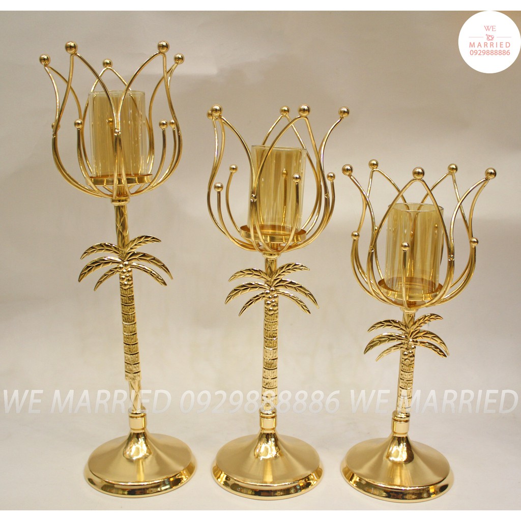 Bộ 3 chân nến cây dừa - CN160Chất liệu: kim loại mạ, ống thuỷ tinh