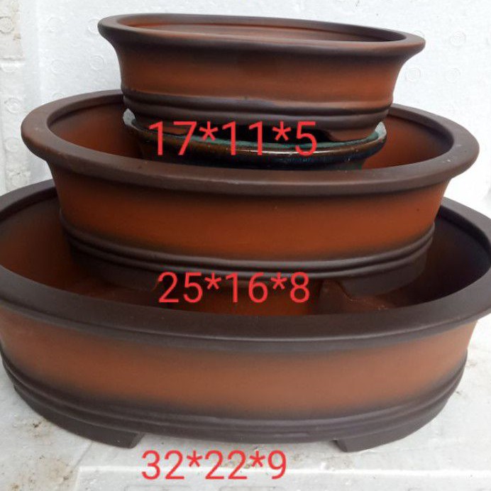 bộ 3 chậu gốm tử sa ovan