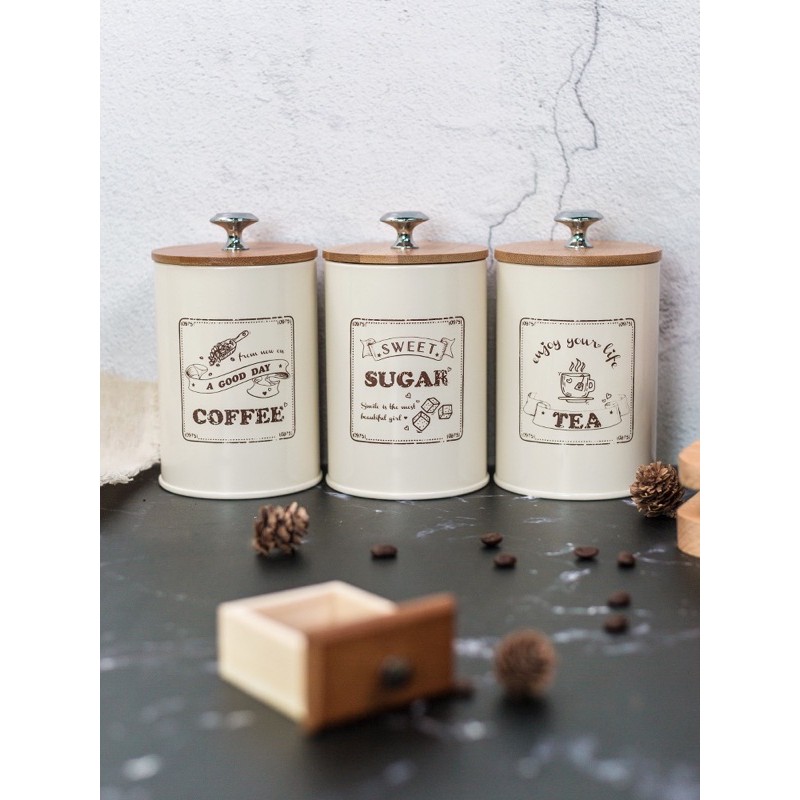 Nhà cửa & Đời sống > Dụng cụ nhà bếp > Dụng cụ pha trà, cà phê || Bộ 3 hũ kim loại trang men đựng đường, trà, cafe, nguyên liệu nhà bếp HÀNG CAO CẤP nắp có gioăng cao su.Còn hàng