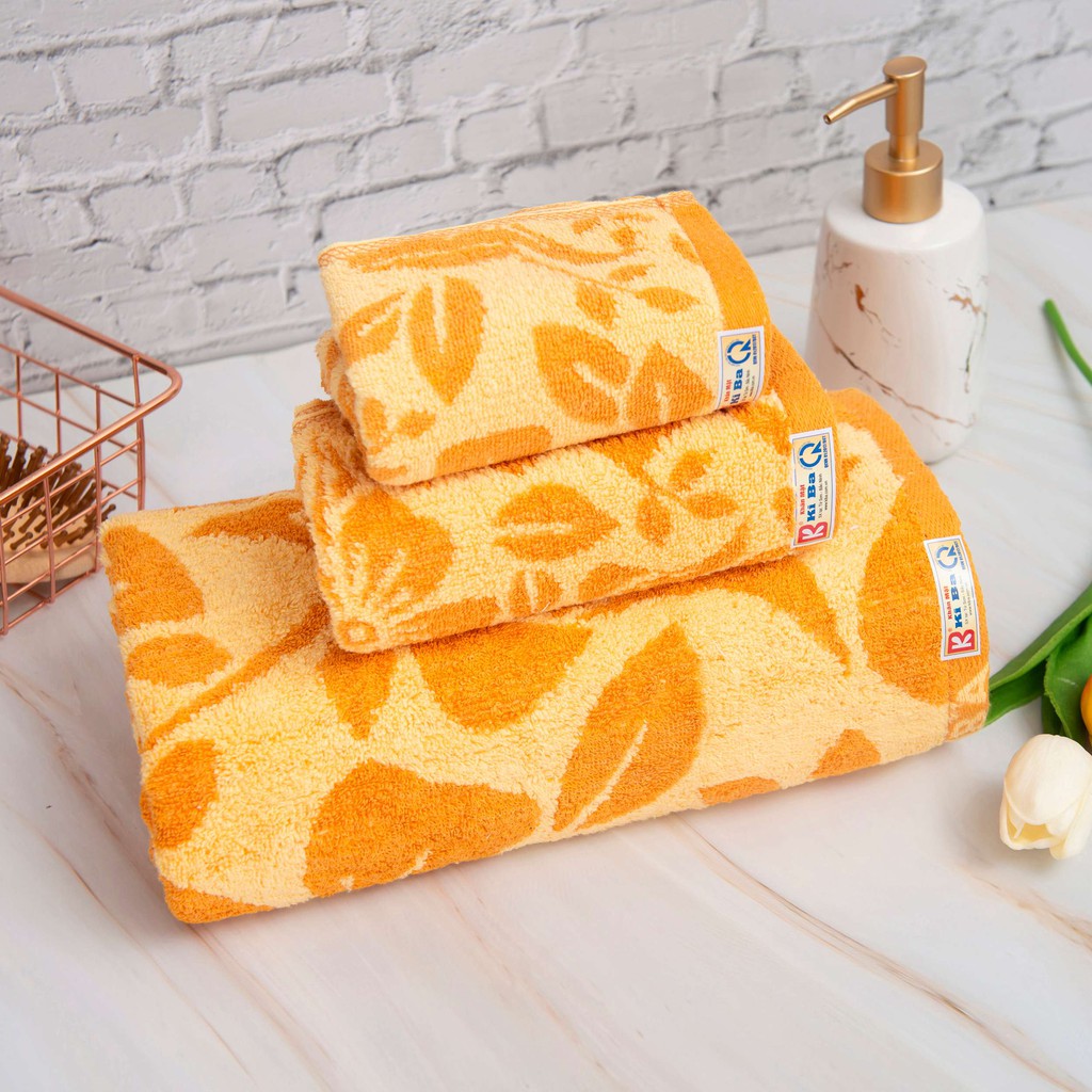 Bộ 3 Khăn Hoa Tắm Gội Mặt, Khăn Tắm Sz 50x100cm KIBA Chất Cotton Hữu Cơ, Êm, Mềm, Dày Dặn, Thấm Hút Tốt, An Toàn