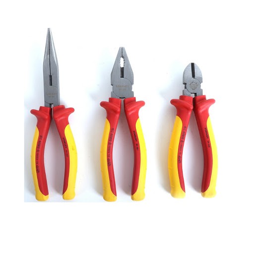 - Gồm: 1 kềm răng cách điện 8 inch, 1 Kềm mũi nhọn mỏ dài cách điện 6 inch và 1 Kềm cắt cách điện 6 inch