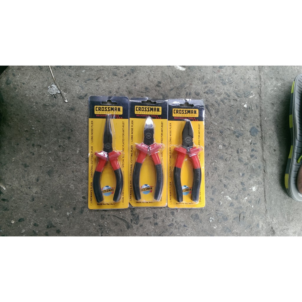 Bộ 3 kìm điện CrossManThương hiệu CrossMan của USA tập trung vào việc sản xuất các dụng cụ cầm tay chất lượng chuyên nghiệp và các sản phẩm liên quan khác. Các sản phẩm của CrossMan đều được kiểm soát chặt chẽ ở mọi bước trong quá trình thiết kế, sản xuất, đóng gói và kiểm soát chất lượng. Khác với thị trường OEM, lợi thế của các công cụ CrossMan là: