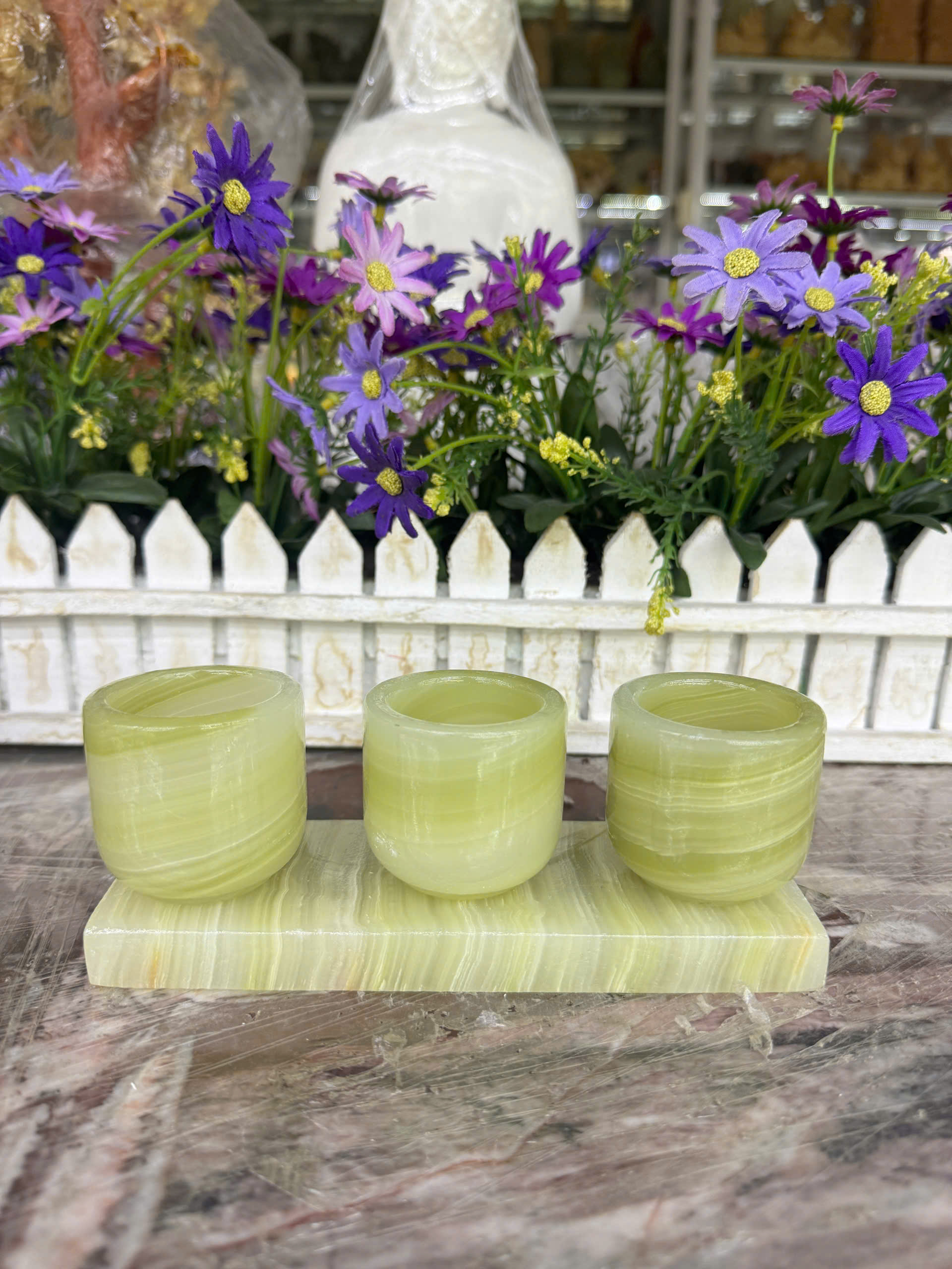 Bộ 3 ly nước, chung nước thờ cúng đá ngọc