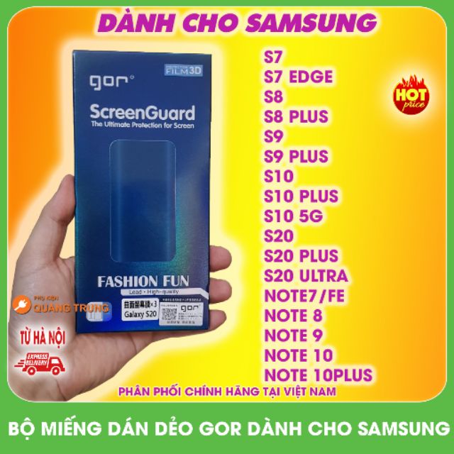 Giới thiệu Bộ 3 miếng dán full màn hình Gor cho S7,S7edge,S8,S8plus,S9,S9Plus,S10,S10plus,S10 5G,note7,note8,note9,note10