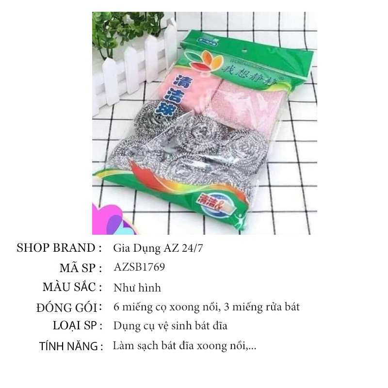 3 miếng rửa bát bọt biển hàn quốc + 6 miếng cọ rửa xoong nồi inox thông minh AZSB1769Gồm 6 cọ inox và 3 mút rửa tạo bọt 👈