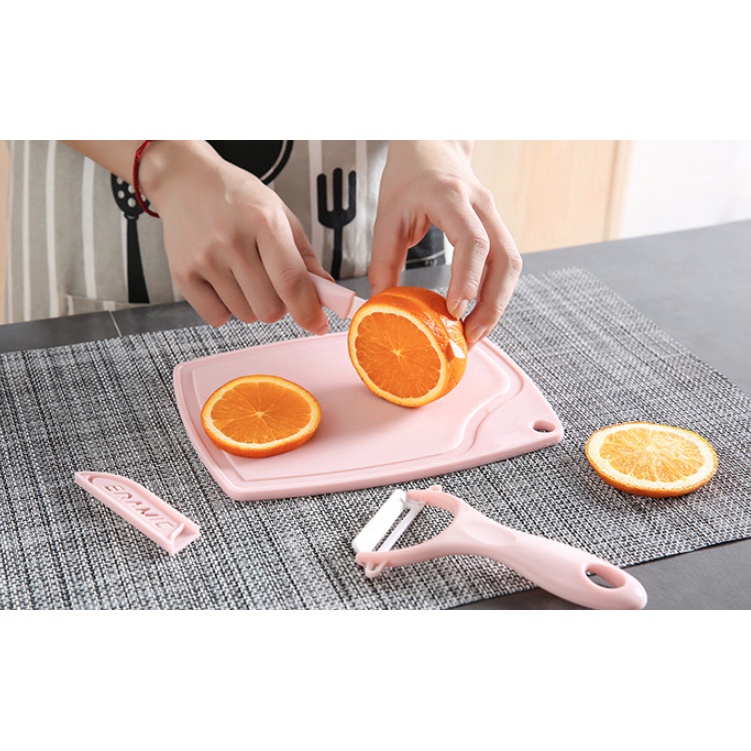 Bộ 3 món Dao, Bào ceramic sứ và Thớt nhựa - Bộ dụng cụ nhà bếp chế biến cho bé ăn dặm