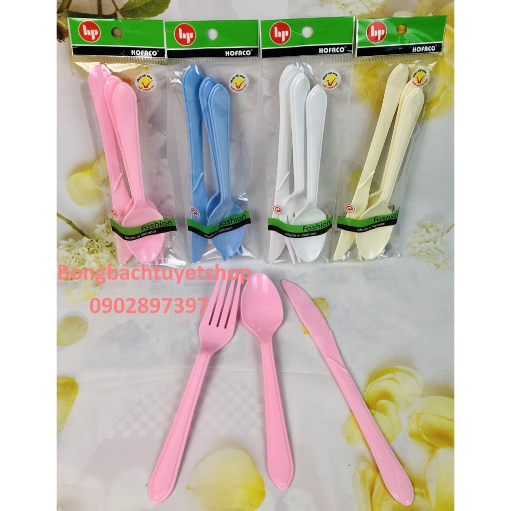 Bộ 3 món dao muỗng nĩa HPB30 - Combo dao muỗng nĩa bằng nhựa an toàn, dễ sử dụng nhựa Hồng Phát