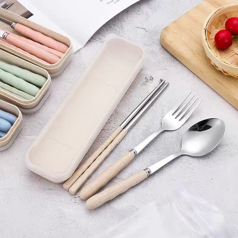 Bộ 3 Món Đũa Dĩa Thìa Inox 304 Không Gỉ Có Hộp Đựng Cao Cấp