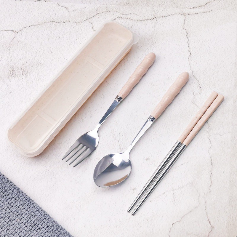 Giới thiệu Bộ 3 Món Thìa, Đũa, Dĩa Lúa Mạch Chất Liệu Inox 304 Không Rỉ Kèm Hộp, Bộ Muỗng,Thìa, Nĩa Dùng Cá Nhân có sẵn