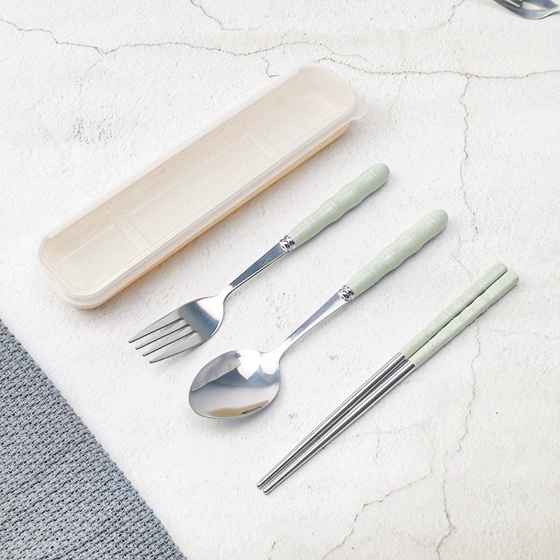 Bộ 3 Món Thìa, Đũa, Dĩa Lúa Mạch Chất Liệu Inox 304 Không Rỉ Kèm Hộp, Bộ Muỗng,Thìa, Nĩa Dùng Cá Nhân
