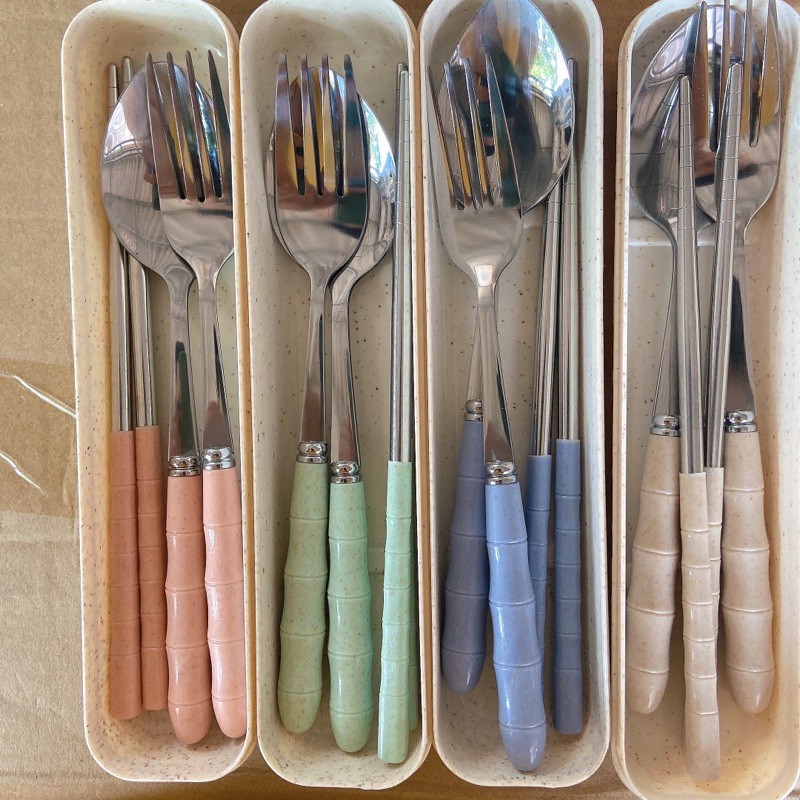 Nhà cửa & Đời sống > Bộ đồ bàn ăn > Dĩa || Bộ 3 Món Thìa, Đũa, Dĩa Lúa Mạch Chất Liệu Inox 304 Không Rỉ Kèm Hộp, Bộ Muỗng,Thìa, Nĩa Dùng Cá NhânCòn hàng