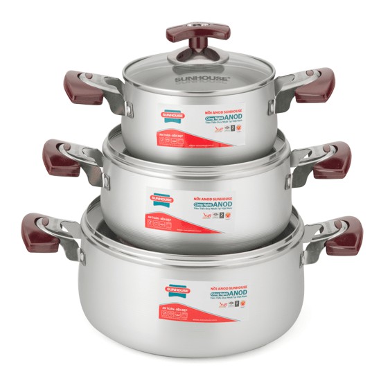 Bộ 3 Nồi Anod Cao Cấp SUNHOUSE 6633 An Toàn, Bền Bỉ