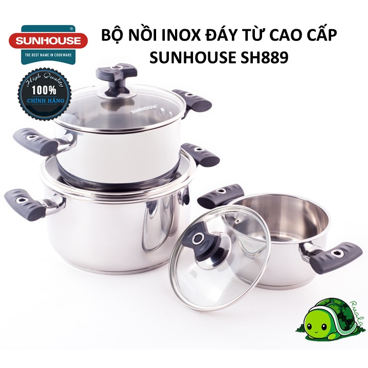Bộ 3 Nồi INOX Đáy Từ Cao Cấp SUNHOUSE SH889