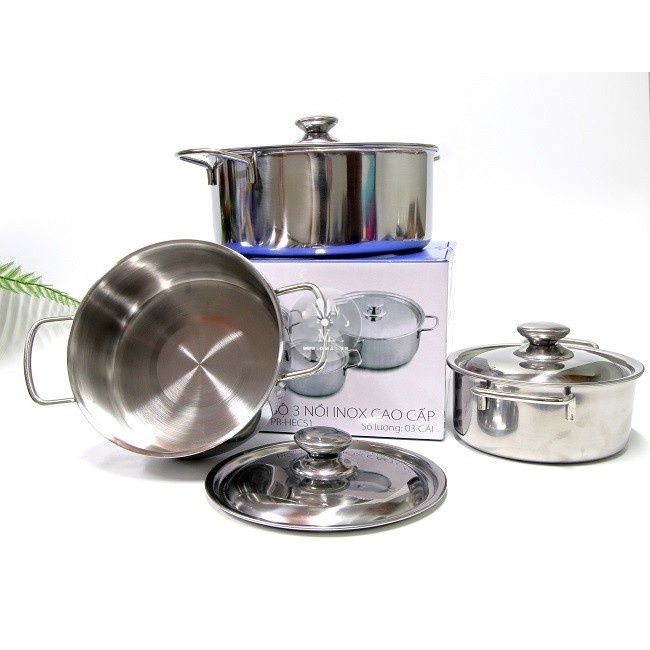 Tên sản phẩm : Bộ 3 nồi Inox Sharp dùng bếp từ– Xuất xứ : Việt Nam