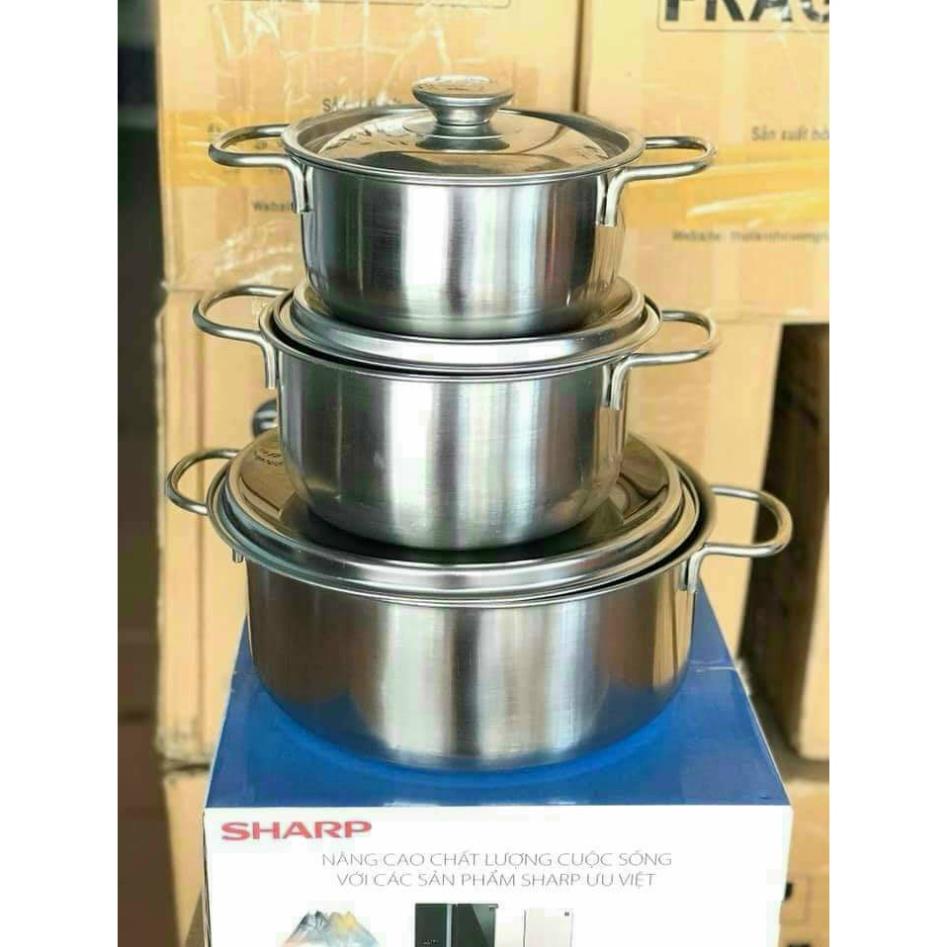 Nhà cửa & Đời sống > Dụng cụ nhà bếp > Nồi || Bộ 3 Nồi Inox Sharp Cao Cấp cho mọi loại bếp dùng được bếp từ, Thân Và Nắp Nồi Inox 410 Dày 0.4mm Tiết Kiệm Nhiên LiệuCòn hàng