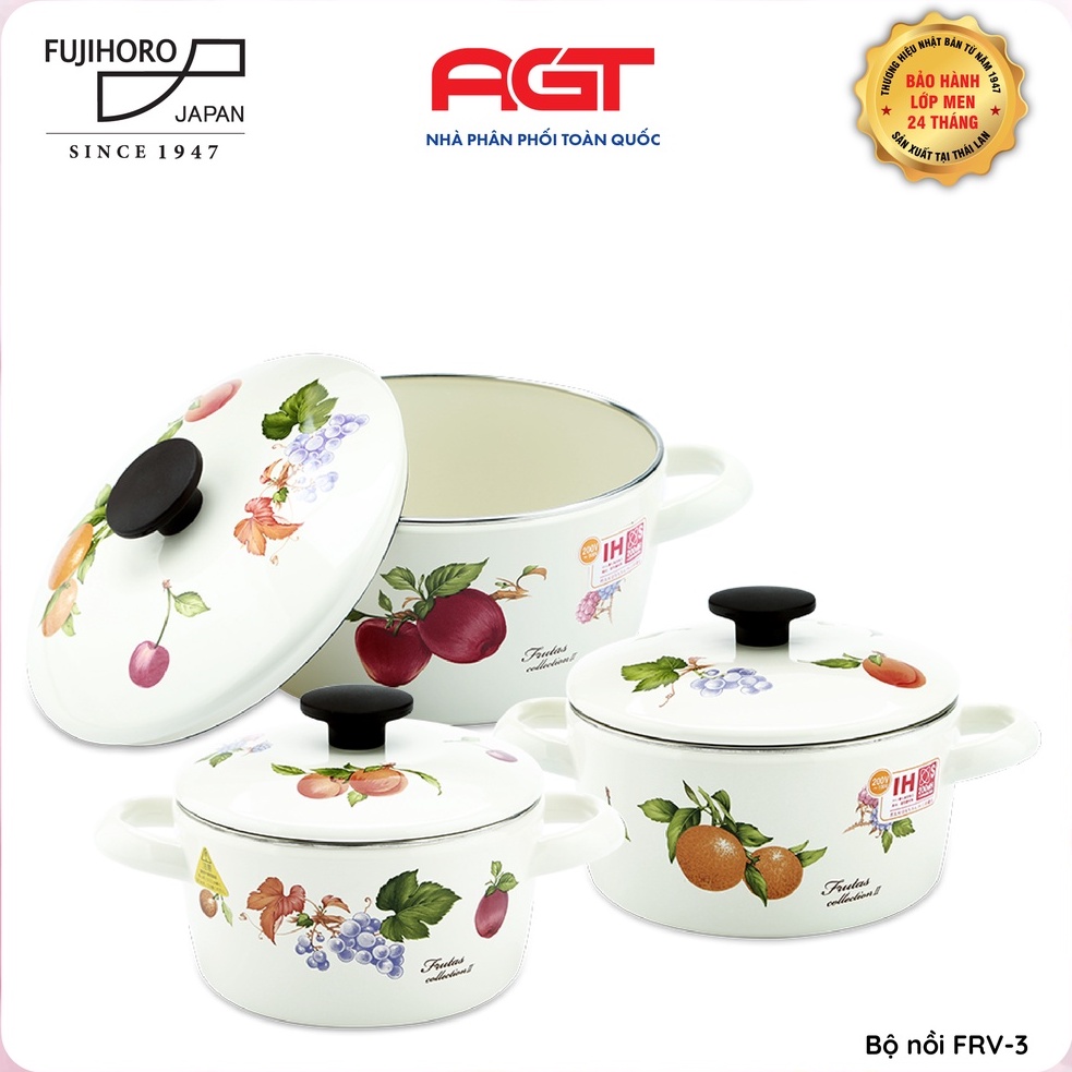 Nhà cửa & Đời sống > Dụng cụ nhà bếp > Nồi || Bộ 3 nồi tráng men cao cấp Nhật Bản Fujihoro FRV-3 (16W,18W,20W) - Họa tiết Trái Cây - Bảo hành 2 năm - Hàng chính hãngCòn hàng