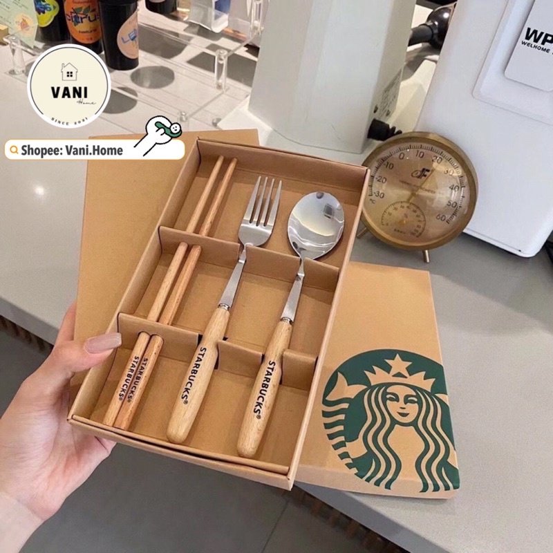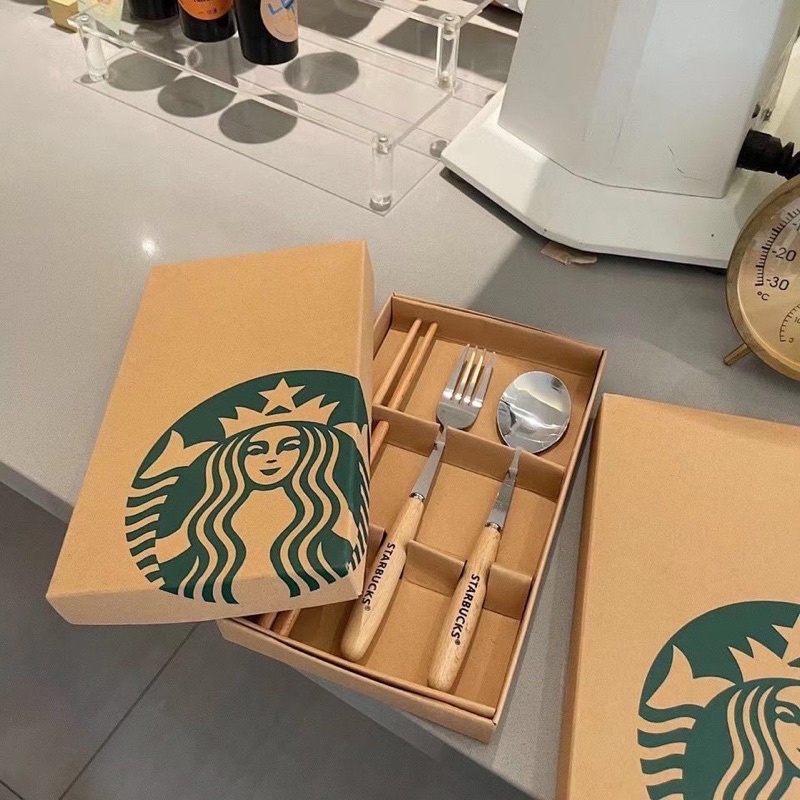 Nhà cửa & Đời sống > Bộ đồ bàn ăn > Dĩa || Bộ 3 thìa dĩa và đũa Starbucks sang chảnh - Set 3 món ( đũa, muỗng, nĩa ) STARBUCKS kèm hộp cao cấpCòn hàng
