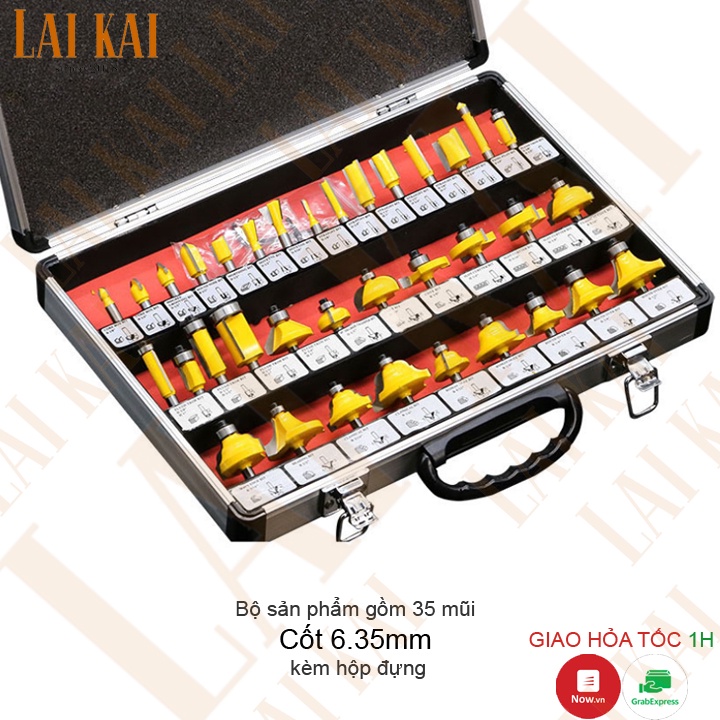 Bộ sản phẩm gồm 35 mũi phay gỗ thông dụng như phay rãnh thẳng, bo cong, vát 45, ... đáp ứng mọi nhu cầu