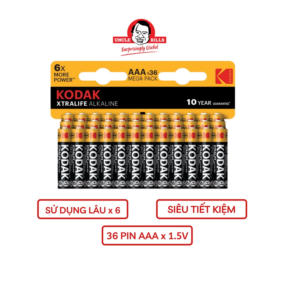 Bộ 36 Pin tiểu Kodak Alkaline AAA điện thế 1.5V Uncle Bills IB0239 chính hãng siêu bền pin remote TV máy lạnh
