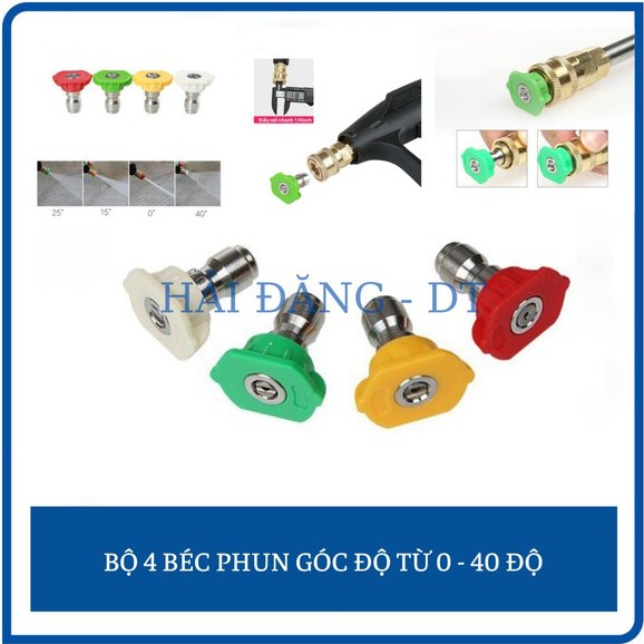Bộ 4 béc rửa xe, Béc xịt rửa xe góc phun từ 0 - 15 - 25 - 40, Gắn súng rửa xe áp lực cao
