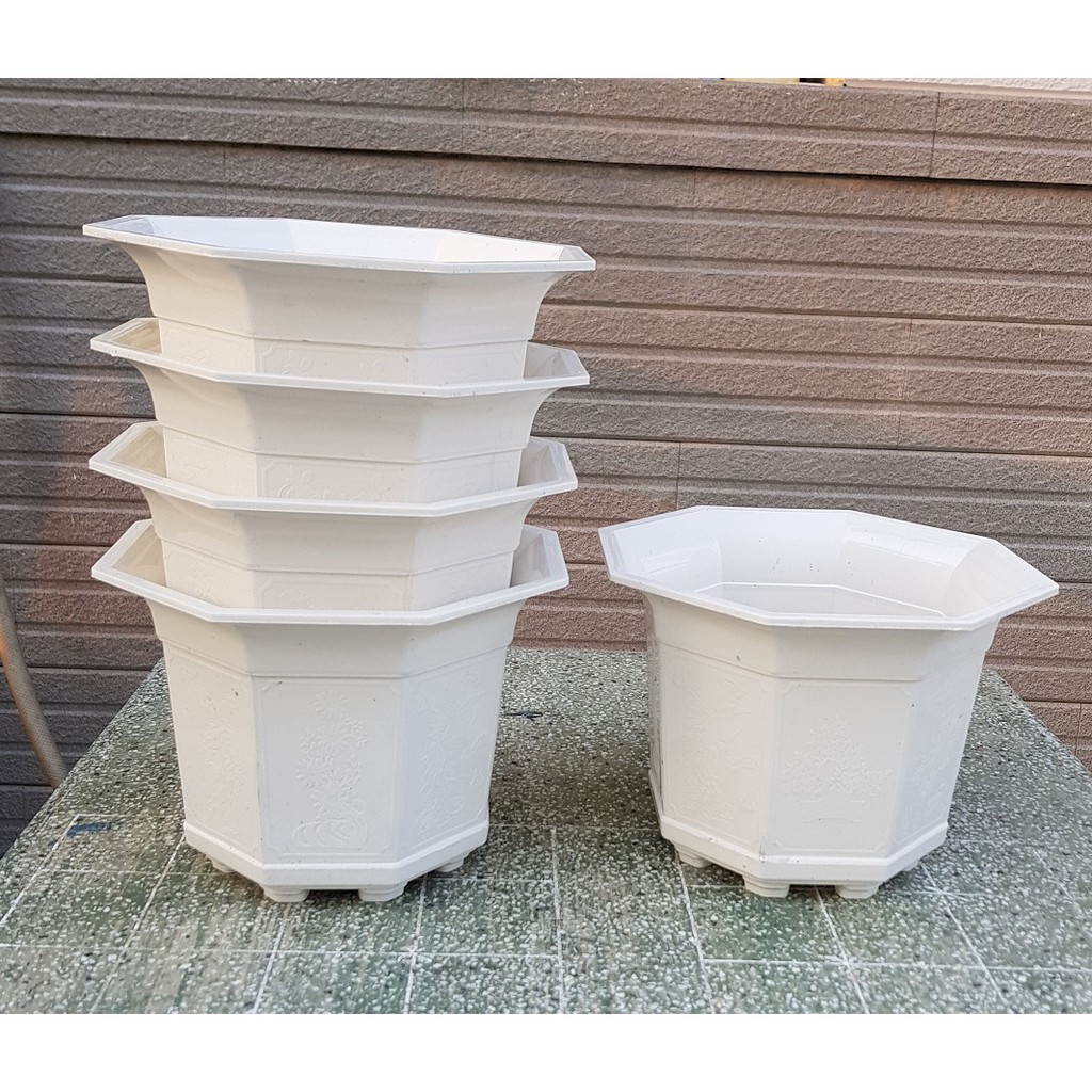 Bộ 4 chậu hoa nhựa bát giác trắng 17x12cm